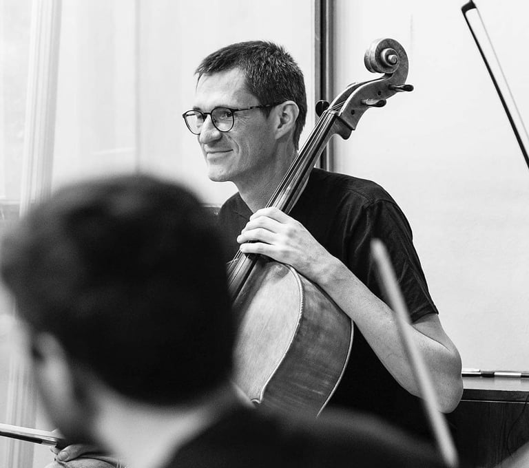 Alfredo Guerrero is a Spanish cellist and pedagogue, whose life has been deeply marked by music since his childhood in Zaragoza. He began his cello studies with Aleksander Czaykowsky, driven by his parents' enthusiasm. At the age of 14, his talent led him to the Escuela de Música Reina Sofía to study with Frans Helmerson and Ángel Luis Quintana, and he later completed his training in Germany, at the Hochschule für Musik Detmold, with Karine Georgian.